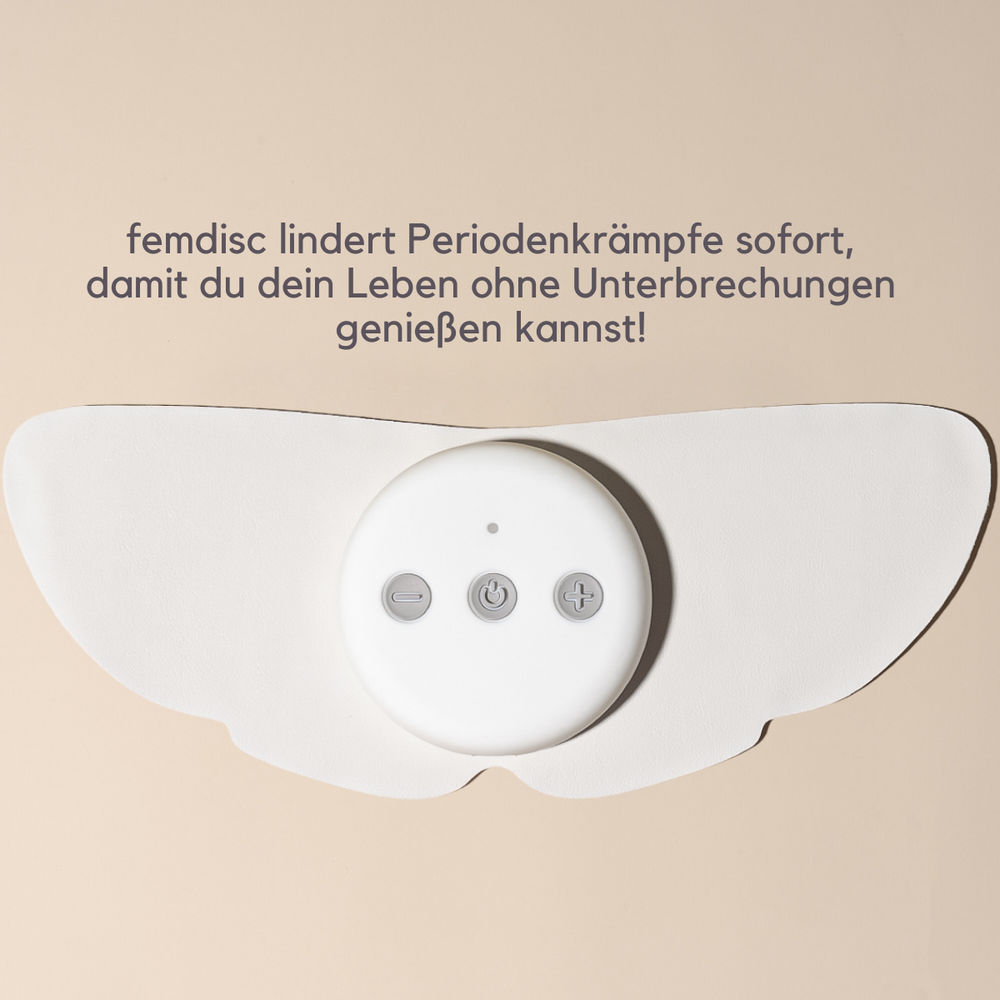 Entdecke die 100% medikamentenfreie, sofortige Schmerzlinderung bei Periodenschmerzen mit femdisc. Dieses diskrete, klinisch getestete 'TENS'-Gerät bietet Linderung bei Periodenschmerzen und Endometriose, indem es Nerven stimuliert, die Schmerzsignale blockieren. Fühle dich endlich wieder entspannt.